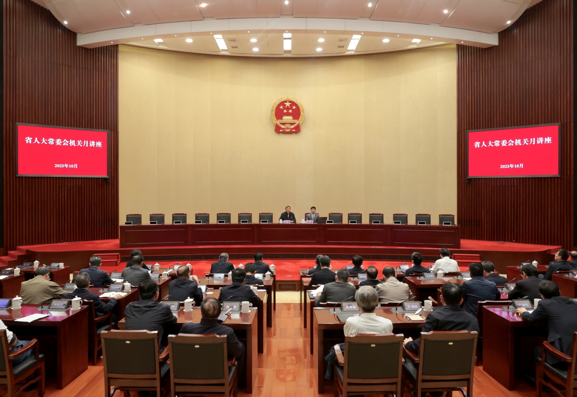 10月31日下午,省人大常委会举办机关月讲座专题报告会,省人大监察司法委委员张锋、教科文卫委委员邵进分别作专题报告。省人大常委会副秘书长、办公厅主任王林主持。