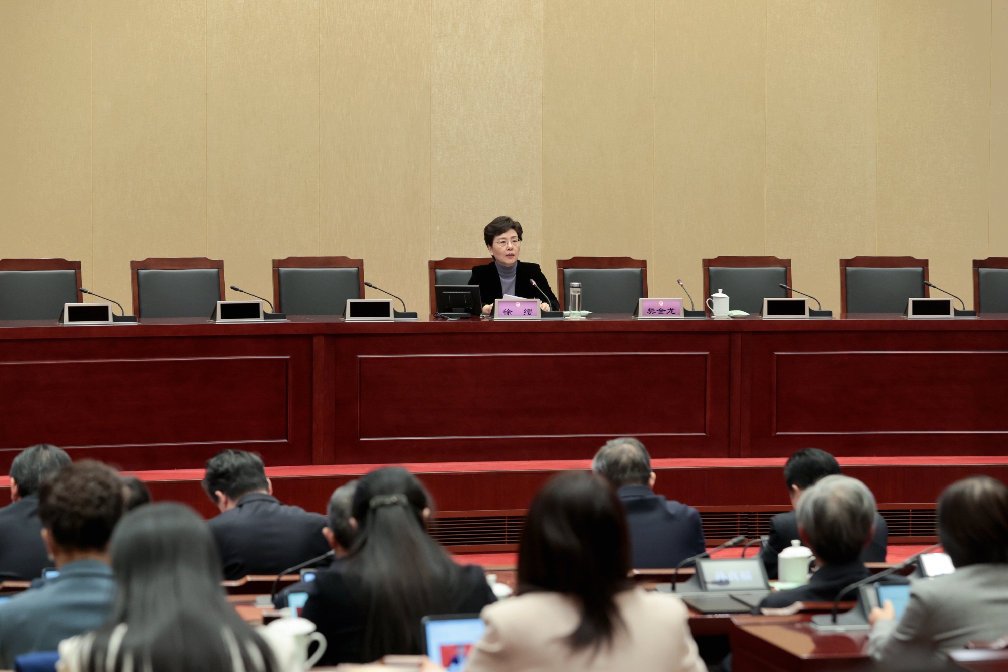 徐缨从深刻理解把握党的二十届四中全会的重大意义,“十五五”时期经济社会发展的指导方针、主要目标、战略任务和重大举措等方面,对全会精神进行深入阐释和系统解读。她指出,学习好贯彻好四中全会精神,是当前和今后一个时期全省上下的一项重大政治任务。要深刻领会、准确把握,将全会精神及《建议》同学习习近平新时代中国特色社会主义思想贯通起来,同学习习近平总书记对江苏工作重要讲话精神结合起来,切实抓好贯彻落实,坚定信心、奋发有为,接续推进中国式现代化江苏新实践。