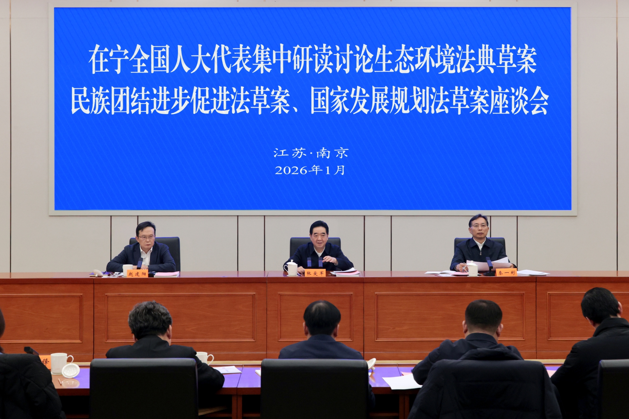 1月21日下午,省人大常委会组织在宁全国人大代表集中研读讨论生态环境法典草案、民族团结进步促进法草案、国家发展规划法草案。省人大常委会副主任、党组副书记张爱军主持会议并讲话。