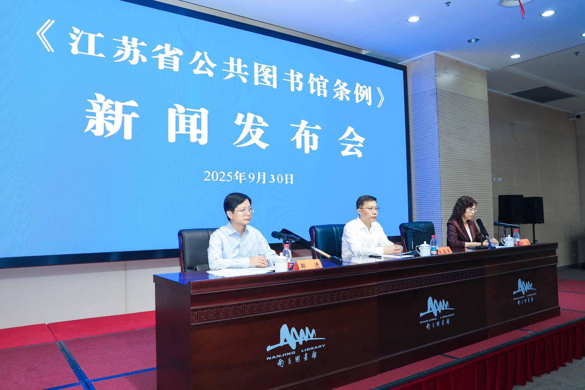 9月30日下午,省人大常委会办公厅在南京图书馆举行新闻发布会,邀请省人大法制委副主任委员花玉军、省人大教科文卫委委员邵进、省文化和旅游厅副厅长钱宁,就省十四届人大常委会第十七次会议表决通过的《江苏省公共图书馆条例》向社会进行发布、作出解读并接受记者和市民群众提问。