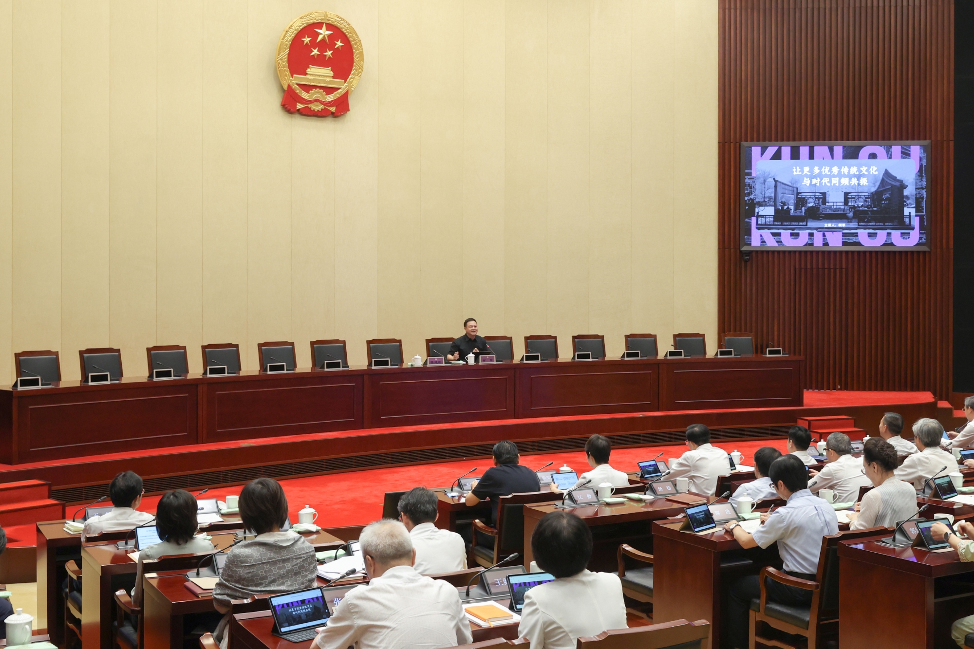 柯军结合自身舞台实践与理论研究,以“让更多优秀传统文化与时代同频共振”为题,从昆曲的历史渊源、艺术特点、美学价值等多个维度展现昆曲的独特魅力,探讨如何通过创新表达、跨界融合,推动“非遗”走近大众、走向国际、走向未来,引发对优秀传统文化保护传承与创新发展新的认识和思考。
