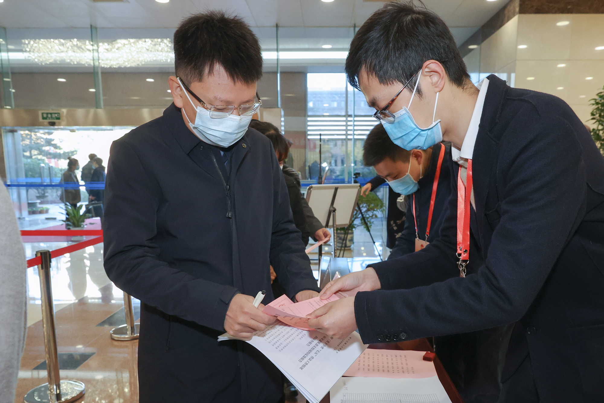 上午8时45分,省人大常委会常务副主任、党组副书记李小敏,党组副书记樊金龙,副主任、党组副书记王燕文、陈震宁,副主任许仲梓、马秋林、邢春宁、魏国强、曲福田和秘书长陈蒙蒙,陆续走进投票站,了解候选人情况,经工作人员仔细核验选民证后,领取选票进行认真填写,并依次走到票箱前投下自己庄严而神圣的一票。
