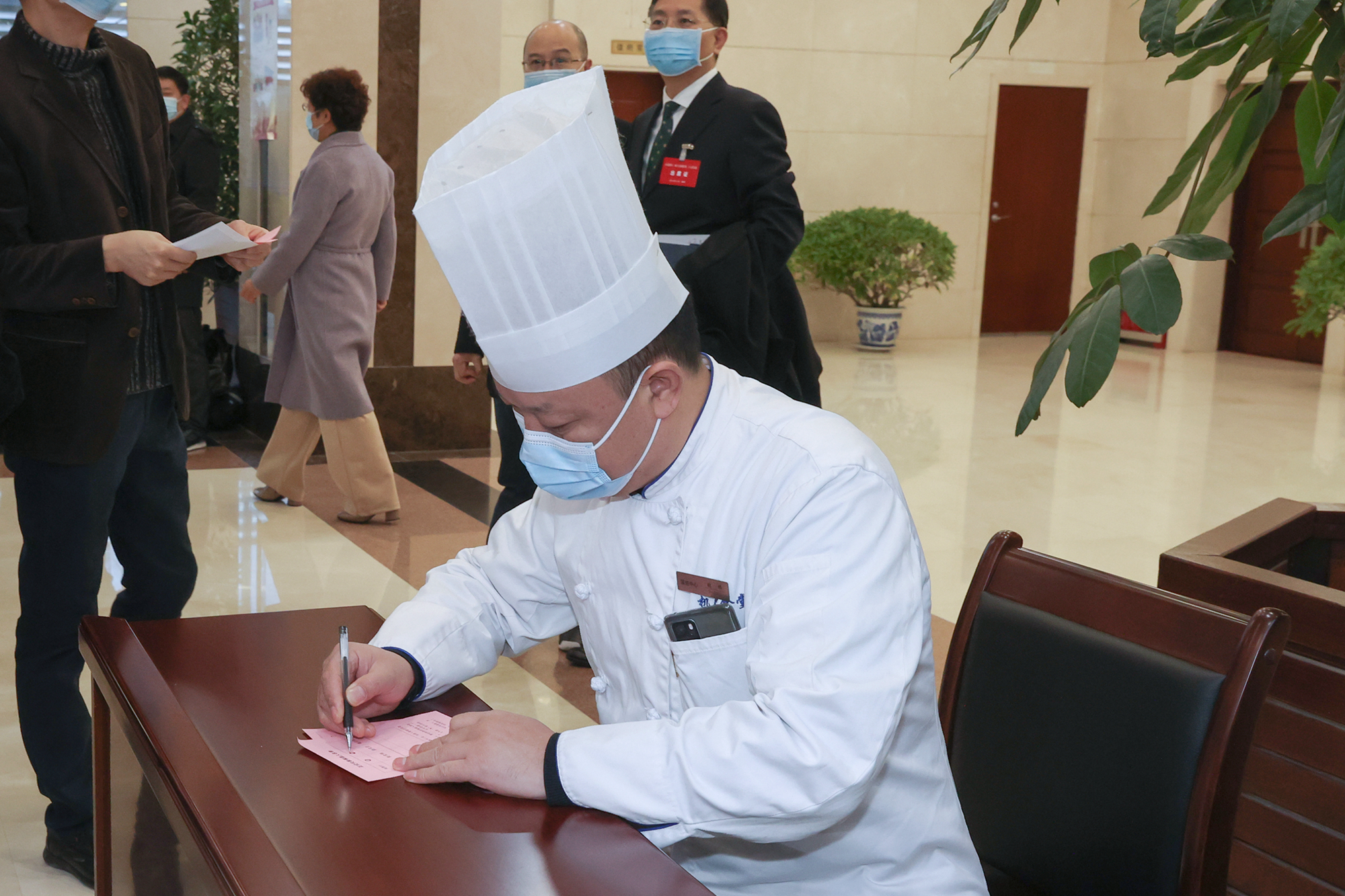 机关食堂的张师傅放下手中的活赶了过来,在认真填写选票之后,把选票投进了票箱,他笑着说,“今天特别高兴,有机会行使自己的民主权利,选出好代表也是为大家嘛。”