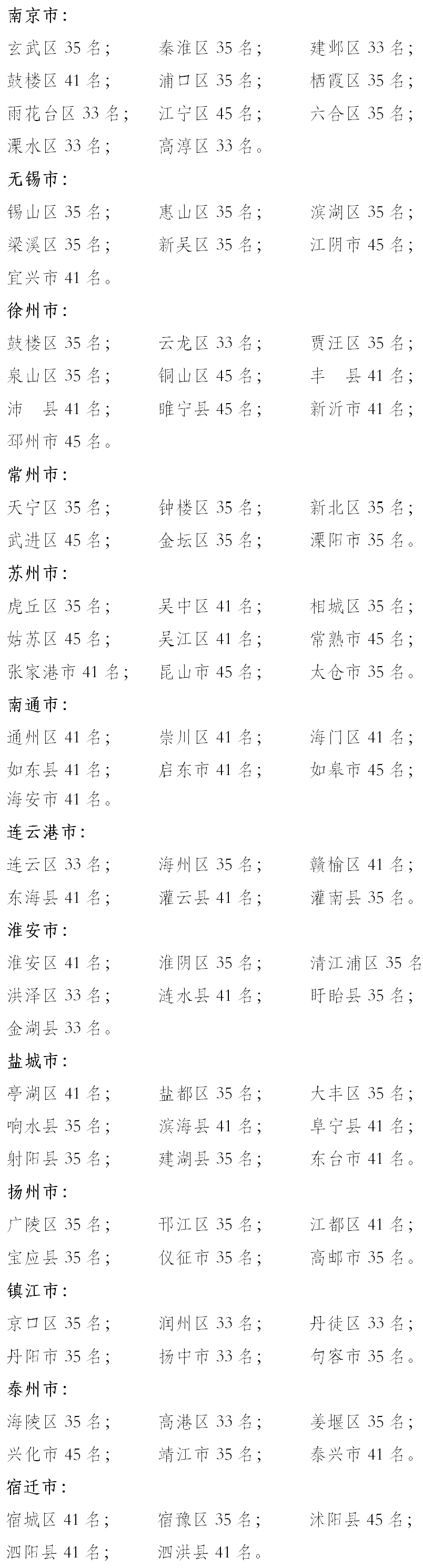 江苏省人民代表大会常务委员会关于全省设区的市和县(市、区)新一届人民代表大会常务委员会组成人员名额的决定