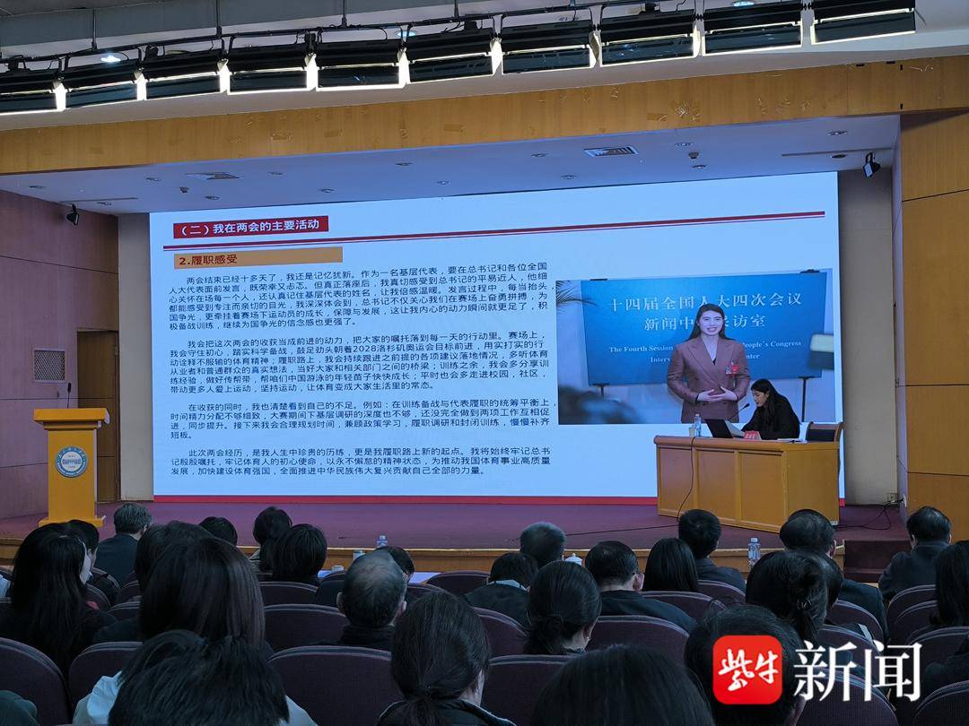 今年全国两会期间,全国人大代表、南京体育学院游泳学院副院长张雨霏向习近平总书记汇报了自己征战三届奥运会的奋斗历程。3月31日,她在南京体育学院向该校师生宣讲两会精神、分享履职感受,并接受记者采访。