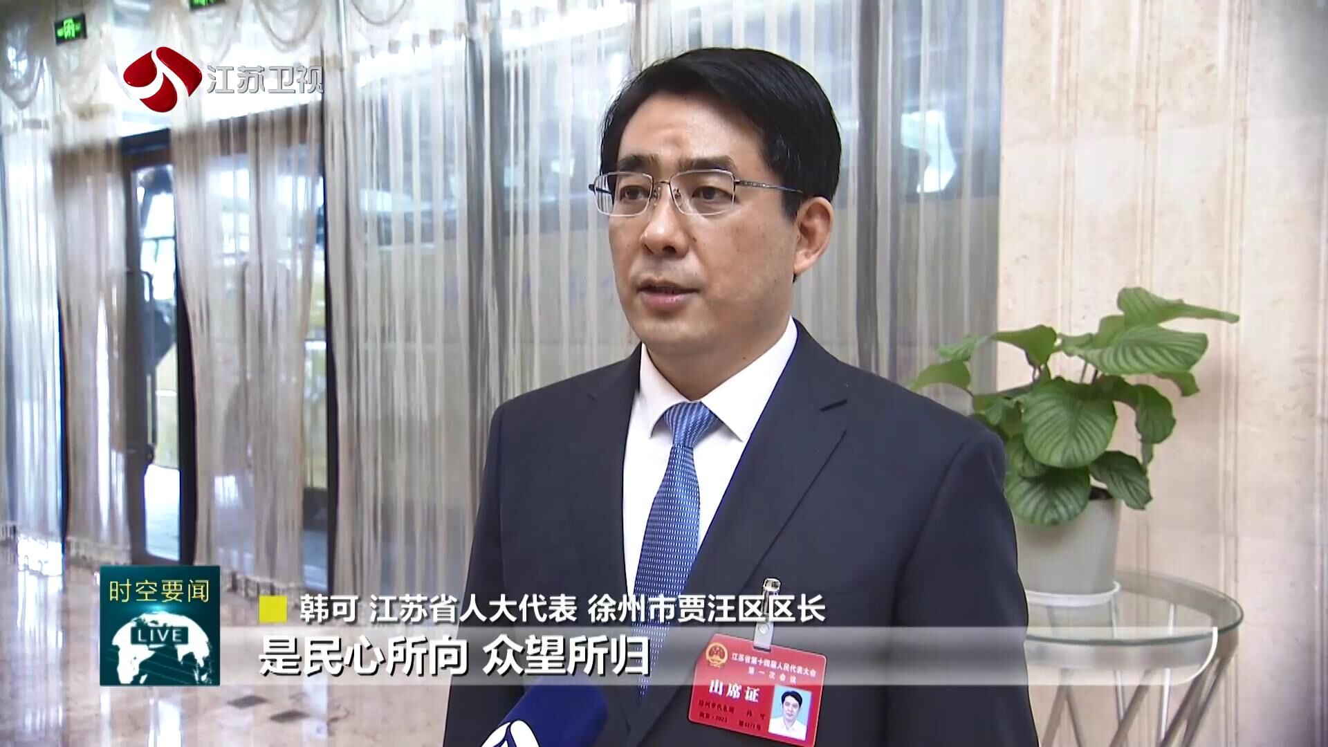 江苏省人大代表,徐州市贾汪区区长韩可说,走出会场,我们心潮澎湃,激动万分!习近平总书记全票当选,是民心所向、众望所归,充分体现了8500万江苏儿女对总书记的衷心拥护和爱戴!2017年总书记在党的十九大召开后首次地方视察就亲临徐州贾汪,强调“要贯彻新发展理念,坚定不移走生产发展、生活富裕、生态良好的文明发展道路”。过去五年,我们始终牢记嘱托、感恩奋进,交出了总书记视察五周年“贾汪真旺”合格答卷。奋进新征程、建功新时代,我们将全面贯彻党的二十大精神,深入落实总书记视察江苏、视察徐州重要讲话指示精神,按照这次省人代会的部署要求,提高站位、砥砺前行,奋力谱写“贾汪真旺”现代化建设新篇章。