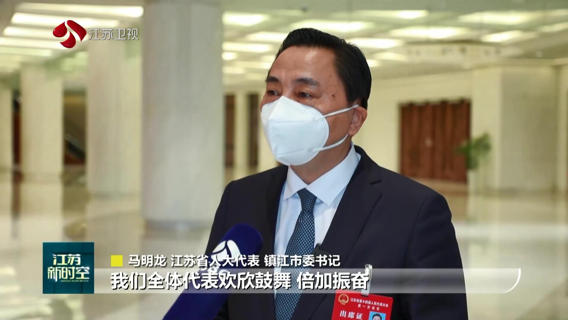 江苏省人大代表,镇江市委书记马明龙说,总书记这次全国人大代表在江苏参选并且全票当选,全体代表欢欣鼓舞、倍加振奋!我们深切体会到总书记不仅是腐败分子的克星,全国人民的福星,更是全党全军全国各族人民的“定盘星”。2014年12月份,总书记亲临镇江视察,总书记看了镇江的医院、企业、走村入户,并且寄语“镇江很有前途”。我们将深入贯彻落实党的二十大精神,坚定拥护“两个确立”,坚决做到“两个维护”,按照省两会的有关部署,踔厉奋发,勇毅前行,积极地响应“干部敢为、地方敢闯、企业敢干、群众敢首创”的时代号召,继续以奔跑的姿态,全面推动镇江高质量发展,为中国式现代化江苏新实践贡献我们的力量。