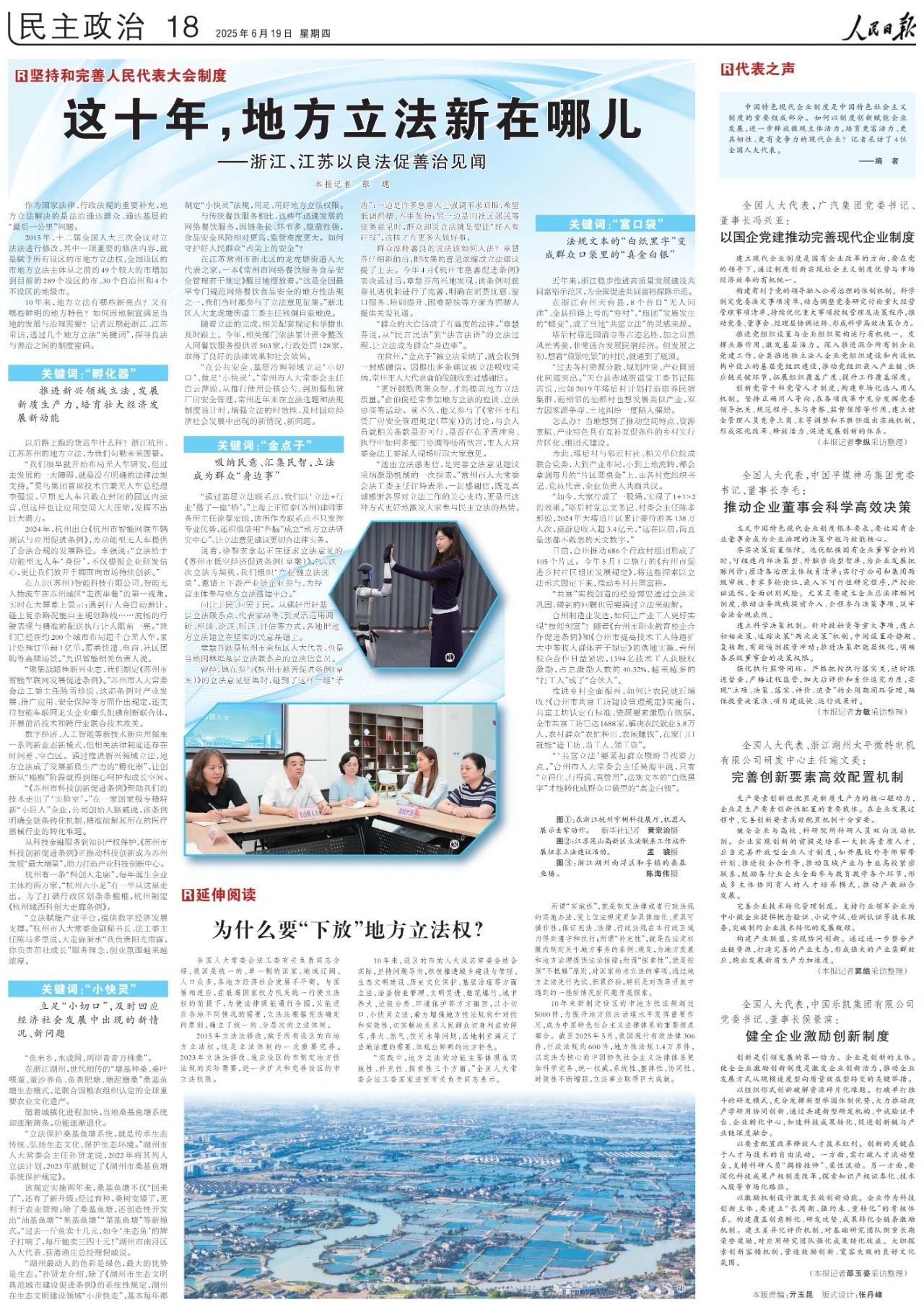 10年来,地方立法有哪些新亮点?又有哪些鲜明的地方特色?如何因地制宜满足当地的发展与治理需要?记者近期赴浙江、江苏采访,透过几个地方立法“关键词”,探寻良法与善治之间的制度密码。