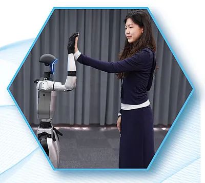 ▲在浙江杭州宇树科技展厅,机器人展示击掌动作。新华社记者 黄宗治摄
