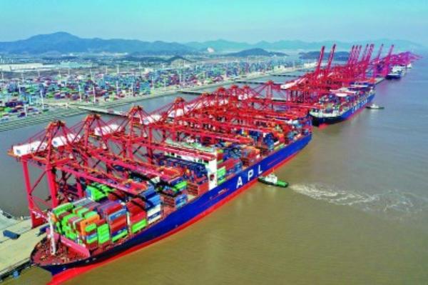 货轮停靠在浙江宁波舟山港梅山港区码头。新华社记者 黄宗治摄