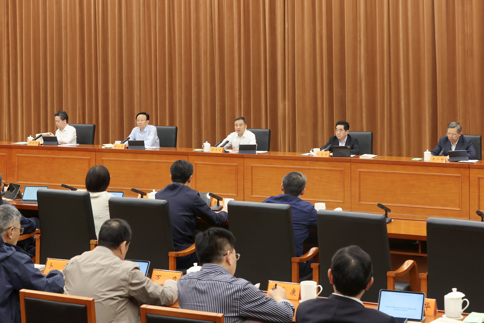 4月21日下午,省人大常委会党组召开扩大会议,学习贯彻习近平总书记在中央政治局会议、中央周边工作会议和在贵州、云南等地考察时的重要讲话精神,集中学习习近平总书记《论坚持和完善人民代表大会制度》和新修改的代表法,研究落实省委关于经济工作的部署要求。受省委书记、省人大常委会主任、党组书记信长星委托,省人大常委会常务副主任、党组副书记樊金龙主持会议。